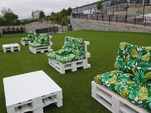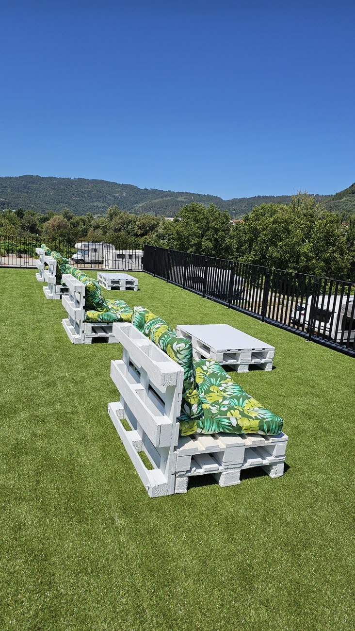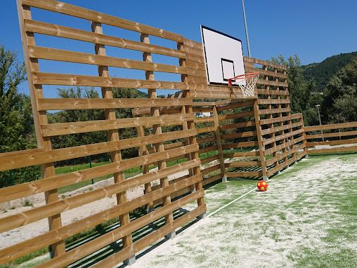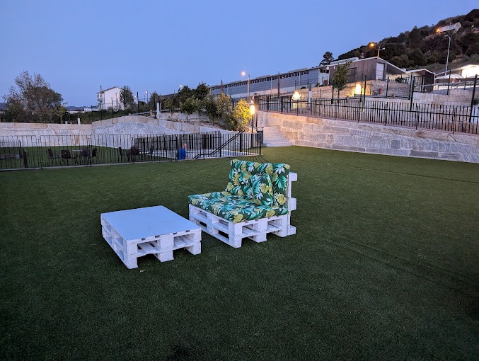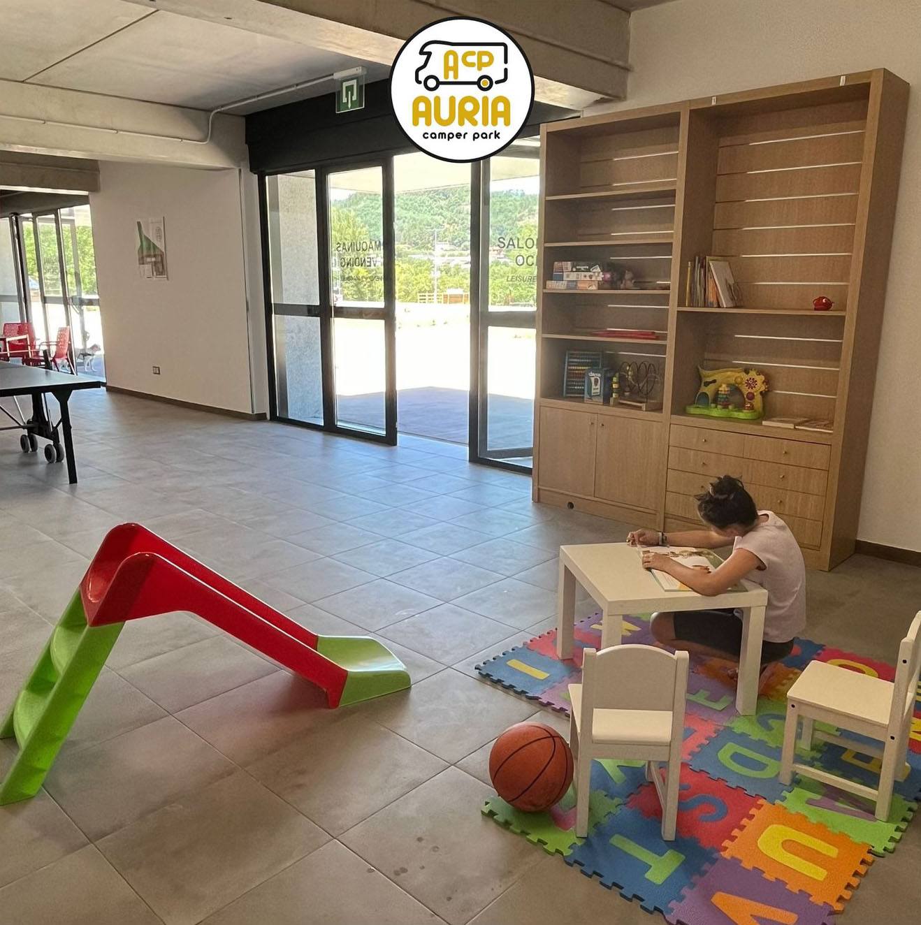 Green areas, children's area, mini football-basketball field, barbecue and picnic area, WC and H-M-disabled changing rooms, industrial washing machines and dryers, games room and library, etc.